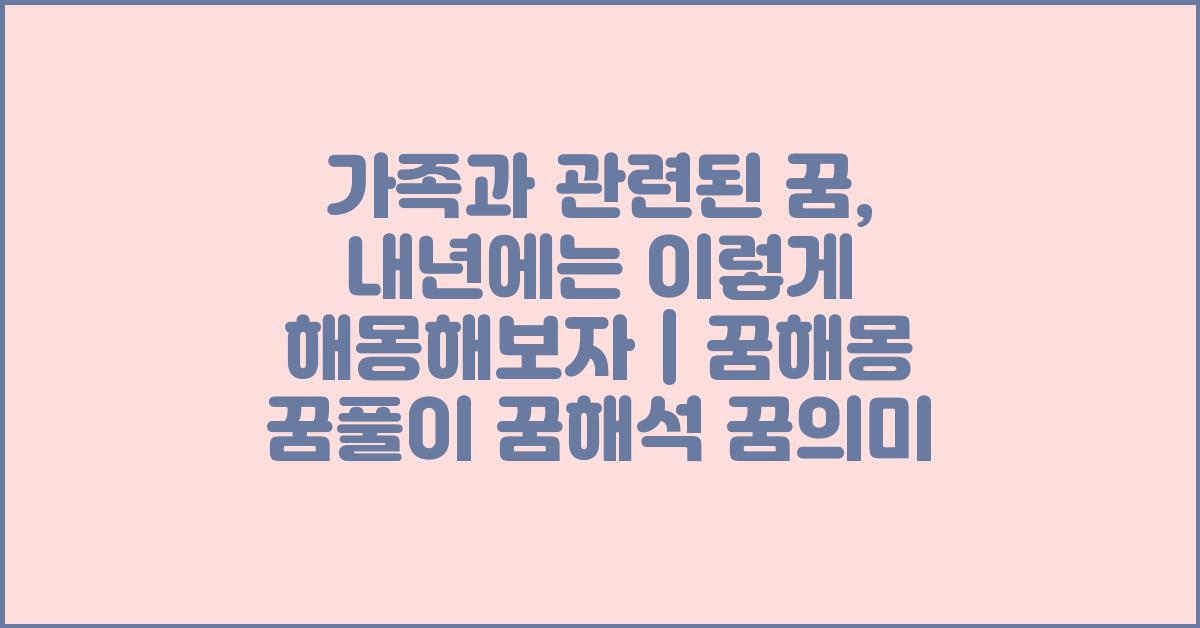 사람의 꿈은 언제나 흥미로운 주제입니다. 특히 가족과 관련된 꿈은 많은 이들에게 특별한 의미가 담겨 있습니다. 꿈은 우리의 잠재의식을 반영하며, 때로는 명확한 메시지로 우리가 처한 상황을 알려주기도 하죠. 이번 글에서는 가족과 관련된 꿈, 제대로 해몽해보자 | 꿈해몽 꿈풀이 꿈해석 꿈의미에 대해 깊이 있게 이야기해보려 합니다.