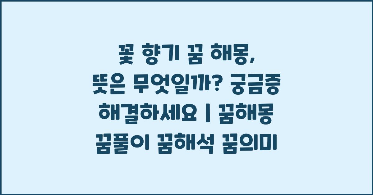 꽃 향기 꿈 해몽, 궁금증 해결하세요! 꿈은 단순한 환상으로 치부될 수도 있지만, 우리가 무의식적으로 느끼고 있는 감정이나 생각이 몸 밖으로 드러나는 좋은 기회가 될 수 있습니다. 여러분도 꿈 속의 꽃 향기를 통해 내면의 행복을 찾고, 긍정적인 변화를 이루기를 바랍니다.