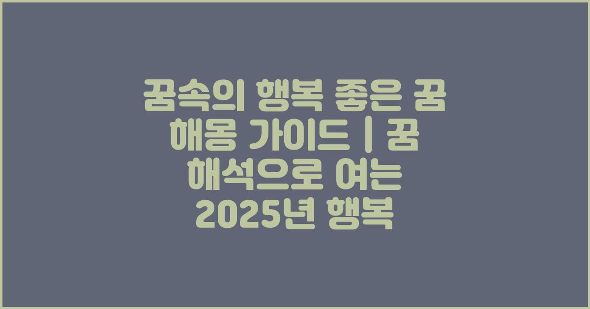 꿈은 단순한 수면 중의 환상이 아닙니다. 많이들 잊고 지나가지만, 우리의 꿈속에는 깊은 의미와 진리를 담고 있습니다. 여러분도 꿈에서 느꼈던 잔잔한 행복의 순간을 기억하시나요? 그것은 종종 우리 내면의 소망이나 감정을 반영합니다. 정말 흥미로운 것은, 꿈의 해석을 통해 2025년의 행복을 어떻게 찾을 수 있는지를 알아보는 여정입니다. 꿈속의 행복 좋은 꿈 해몽 가이드 | 꿈해몽 꿈풀이 꿈해석 꿈의미는 그런 여정을 위한 나침반이 될 수 있습니다.