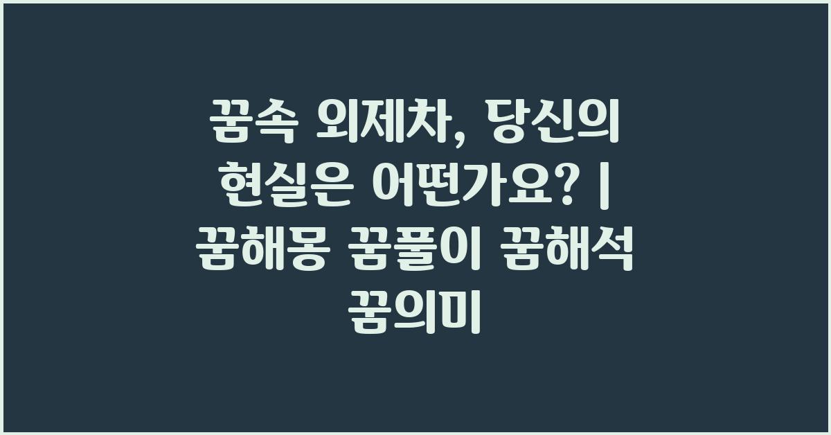 특별한 꿈을 꾸는 것은 우리의 감정과 생각이 무의식 속에서 어떻게 형상화되는지를 보여주는 훌륭한 방식입니다. 꿈속 외제차는 많은 사람들에게 성공, 부, 그리고 자유를 상징합니다. 차량은 이동 수단일 뿐만 아니라, 우리가 원하는 꿈을 향해 나아가고 있다는 것을 의미합니다. 여러분도 이런 종류의 꿈을 꾸신 적이 있으신가요? 많은 사람들은 꿈속 외제차를 통해 자신의 삶이 어떻게 바뀔 수 있는지에 대한 욕망을 표현합니다.