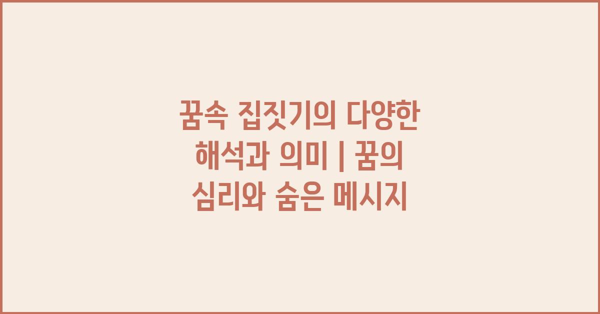 꿈속 집짓기는 단순한 꿈을 넘어 우리의 내면 심리를 돌아보게 하는 중요한 기회를 제공합니다. 이러한 꿈을 통해 우리는 자신을 더 깊이 이해하고, 변화의 원동력을 발견할 수 있습니다. 꿈속 집짓기의 다양한 해석과 의미 | 꿈해몽 꿈풀이 꿈해석 꿈의미에 대한 이해가 여러분의 삶을 더 풍요롭게 하기를 바랍니다.