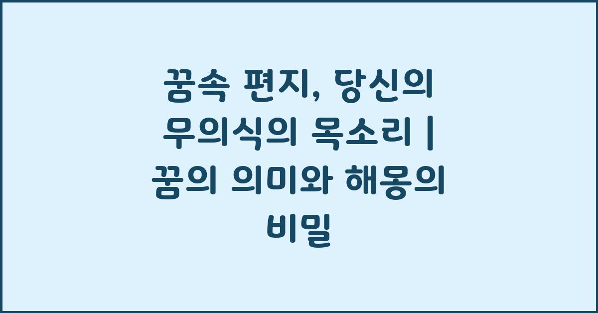 꿈은 종종 우리 무의식의 메신저 역할을 합니다. 꿈속 편지, 당신의 무의식의 목소리 | 꿈해몽 꿈풀이 꿈해석 꿈의미의 주제는 그 이유에 대해 깊이 탐구할 수 있는 기회를 제공합니다. 꿈속의 경험은 단순한 환상이 아닙니다. 우리 내면의 감정, 두려움, 그리고 소망이 얽혀 있는 복잡한 이야기입니다. 이러한 꿈속에서 얻는 메시지는 무언가를 의미하며, 그것은 우리가 직면하고 있는 상황이나 감정적 갈등과 연결되어 있습니다.