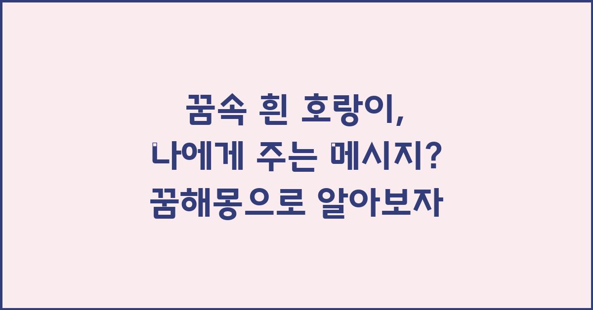 이렇게 꿈속 흰 호랑이가 던지는 메시지는 아주 중요합니다. 자신의 삶에서 자주 꿈을 돌아보며, 그 속에서 중요한 통찰을 얻길 바랍니다.