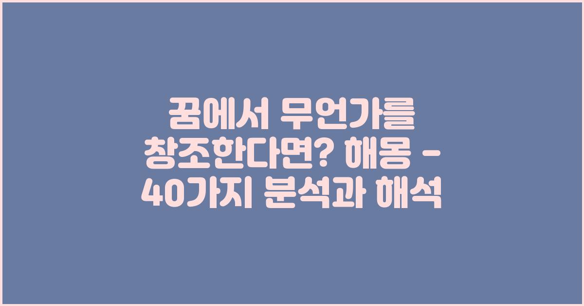 이제 꿈에서 무언가를 창조하는 다양한 사례와 해석을 40가지로 나누어 보겠습니다. 각 해석은 개인의 경험과 연결되어 있기 때문에, 적절히 자신의 상황에 맞게 적용해 보세요.