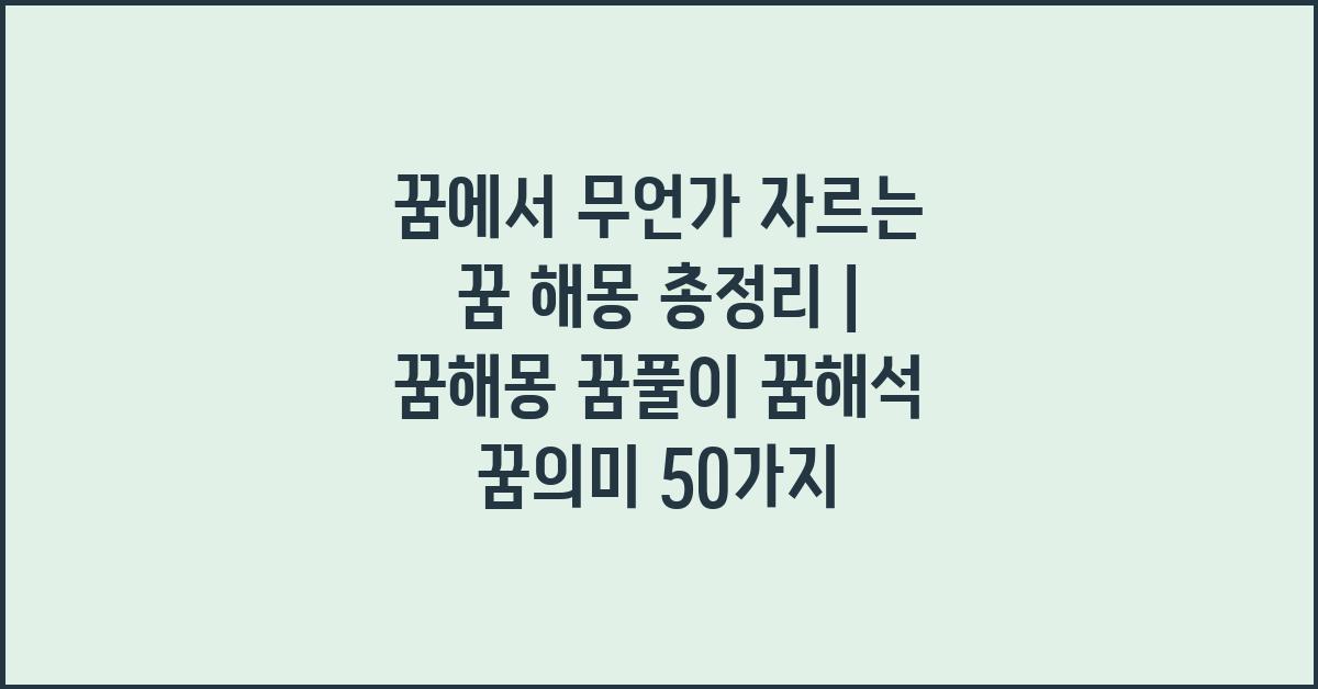 꿈에서 무언가를 자르는 꿈은 다양한 해석이 존재합니다. 이 꿈은 변화, 결별, 혹은 중요한 결정을 나타낼 수 있으며, 자신을 돌아보게 만드는 계기가 될 수 있습니다.