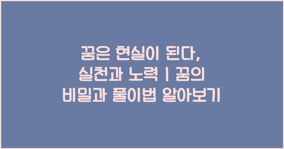 이제 꿈은 현실이 된다: 실천과 노력 | 꿈해몽 꿈풀이 꿈해석 꿈의미를 마음에 새겨, 자신이 원하는 삶을 그려보세요. 힘들 때도 많겠지만 그 한 걸음이 진정한 행복으로 이어질 것입니다. 꿈의 순간은 언제나 소중한 것임을 잊지 마세요.