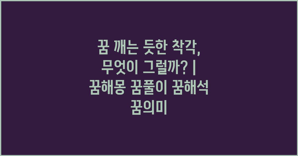 꿈 깨는 듯한 착각, 그 이유는 무엇일까? 꿈에서 깨어나는 듯한 순간은 쉽사리 지나가지만, 그 이미지와 감정은 오래도록 남습니다. 꿈을 꾸는 도중 느끼는 혼란과 극적인 상황들은 우리에게 많은 질문을 던지게 합니다. 이러한 착각의 세계에서 발생하는 감정 혹은 상황들은 무엇을 의미하며, 우리는 그 속에서 어떤 교훈을 얻을 수 있을까요?