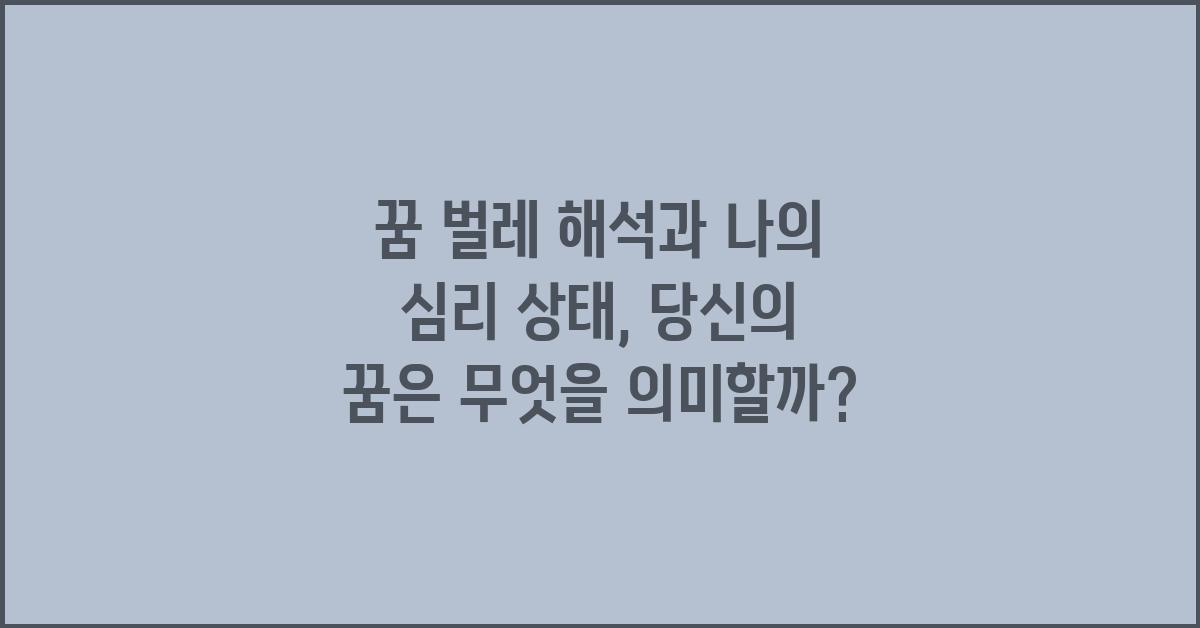 내가 이 주제에 관심을 가지게 된 계기는, 언젠가 꿈에서 한 마리의 큰 벌레가 나를 쫓아다녔기 때문입니다. 그 벌레는 실제로 생긴 모습보다 훨씬 기괴하고 두려웠습니다. 그 후에 꿈의 의미를 해석해본 결과, 내 삶에서 해결되지 않은 문제나 감정적 부담이 반영된 것이라는 것을 깨달았습니다. 여러분도 이런 비슷한 경험이 있으신가요? 꿈이 우리에게 주는 메시지를 이해하는 것은 중요한 과정입니다.