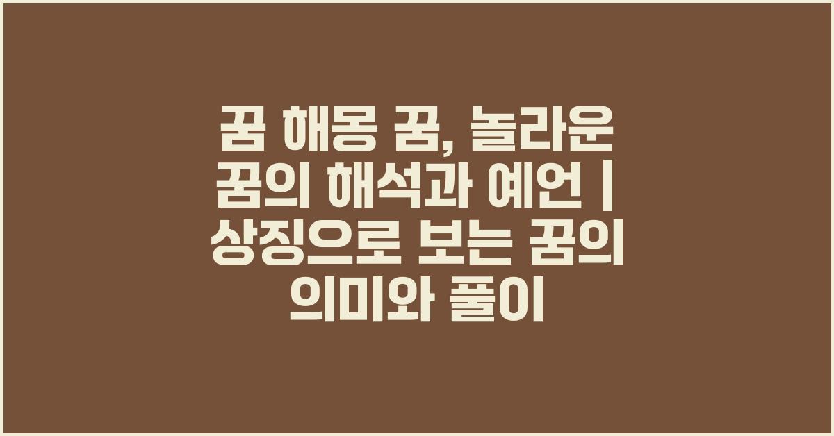 꿈 해몽 꿈: 놀라운 꿈의 해석과 예언 | 꿈해몽 꿈풀이 꿈해석 꿈의미의 세계는 매우 다채롭고 흥미로운 시간을 제공합니다. 여러분도 자신의 꿈을 통해 많은 것을 발견해보세요!