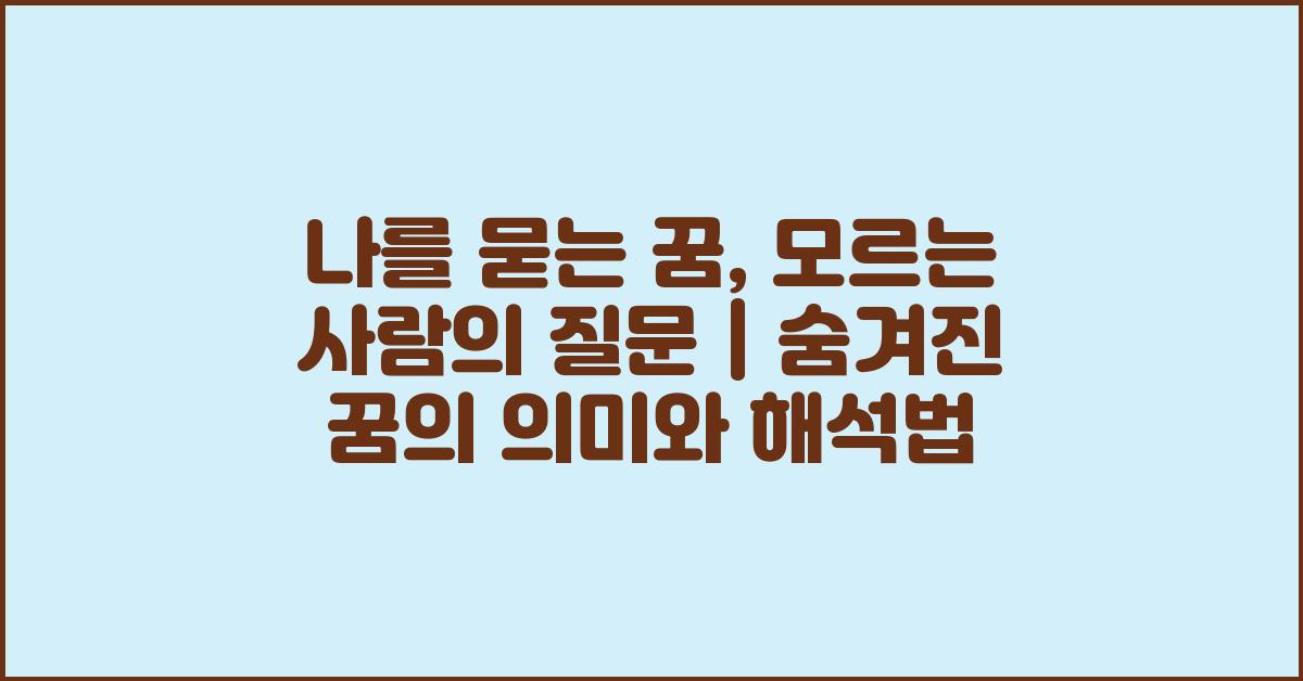 꿈은 우리가 잠을 자는 동안 마음속 깊은 곳에서 일어나는 여러 가지 이미지와 감정의 집합체입니다. 그 꿈들 중에서도 특히 '나를 묻는 꿈'은 우리에게 매우 특별한 메시지를 담고 있습니다. 이러한 꿈은 종종 모르는 사람에게서 질문을 받는 형태로 나타나는데, 이 질문들은 우리가 놓치고 있는 부분이나, 스스로에게 솔직하게 답해야 할 문제를 상기시켜줍니다. 꿈속의 질문은 단순히 호기심이 아닌, 우리 내면의 진심을 들여다보는 통로가 될 수 있습니다.
