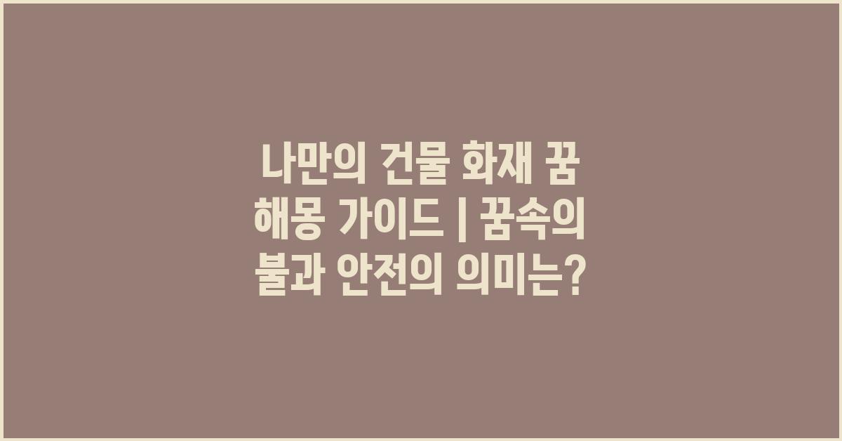 안녕하세요! 오늘은 언제나 우리를 놀래키는 꿈, 특히 나만의 건물에서 발생하는 화재 꿈에 대해 이야기해보려 합니다. 불의 이미지는 위험과 두려움을 상징하는 동시에 정화의 의미도 간직하고 있습니다. 여러분도 이런 꿈을 꾼 적이 있으신가요? 꿈속에서의 불은 여러분의 마음 깊숙한 곳에 숨겨진 감정이나 생각을 반영할 수 있습니다. 꿈 해몽의 세계는 신비롭고 매력적이죠. 나만의 건물 화재 꿈 해몽 가이드 | 꿈해몽 꿈풀이 꿈해석 꿈의미를 통해 이 흥미로운 주제를 함께 탐구해보도록 해요!