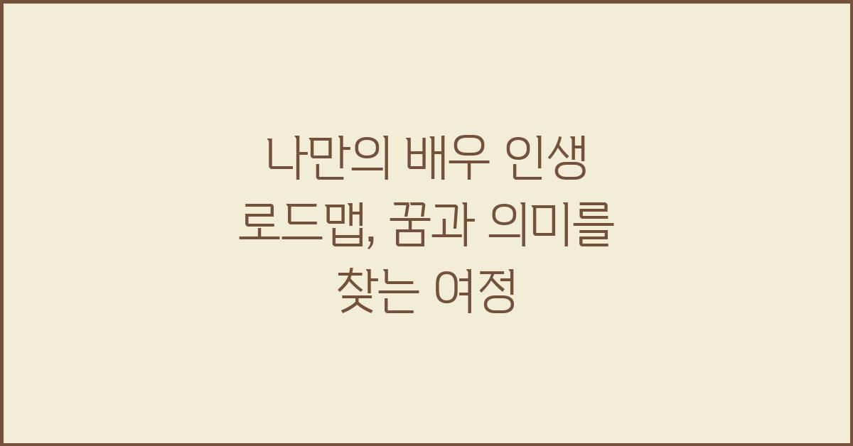📌 배우로서의 시작, 나만의 로드맵 그리기
