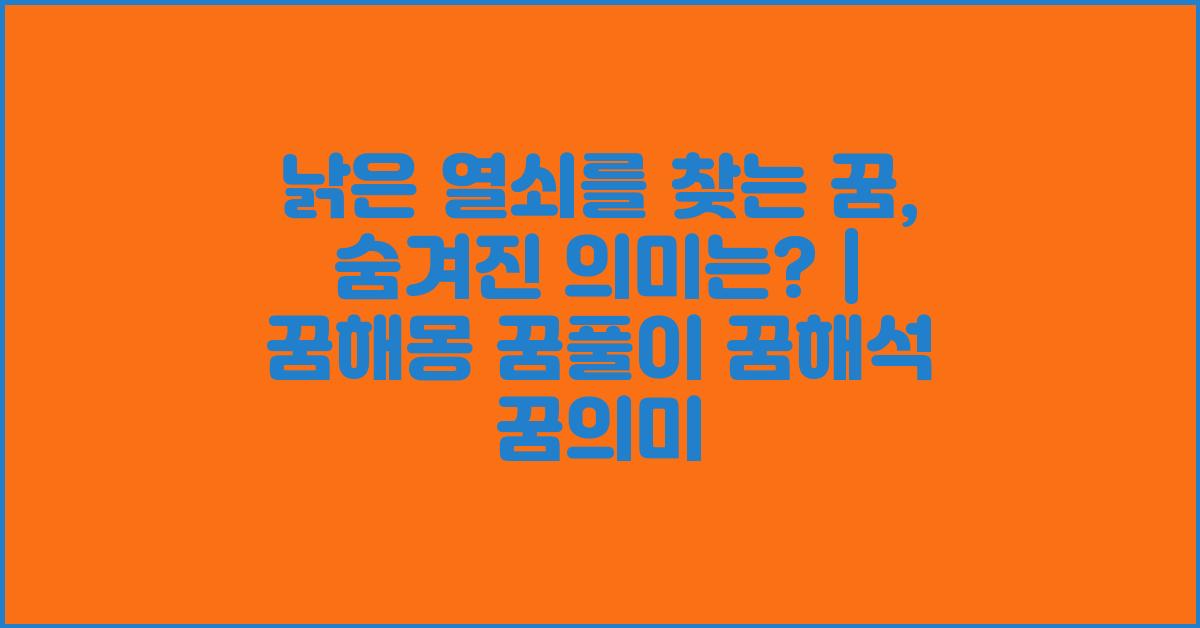 낡은 열쇠를 찾는 꿈, 무엇을 의미할까? | 꿈해몽 꿈풀이 꿈해석 꿈의미를 통해, 이는 여러분이 새로운 가능성을 발견하거나 세상에 대한 새로운 관점을 열어주는 의미로 해석될 수 있습니다. 여러분의 무의식이 지난 경험을 토대로 미래를 탐색하라는 메시지를 보내고 있는지도 모릅니다. 그러니 그 기회를 놓치지 마세요!