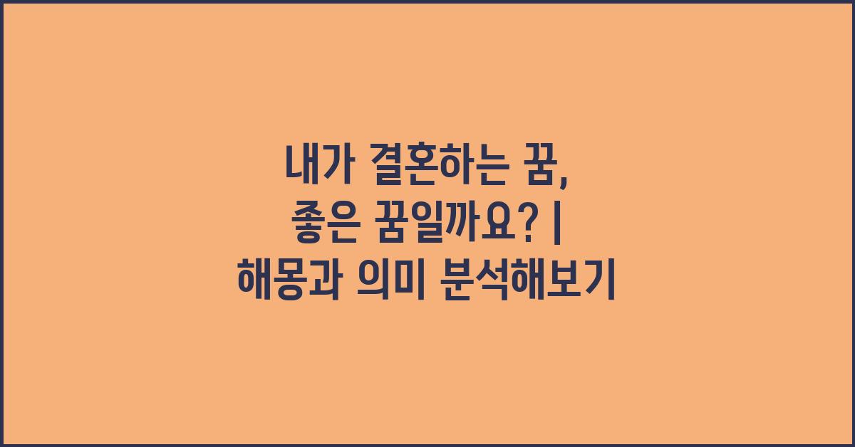 전체적으로 결혼하는 꿈은 좋은 경향을 시사하는 경우가 많습니다. 새로운 시작과 변화를 상징하거든요. 내가 결혼하는 꿈, 좋은 꿈일까요? 그렇다면, 꿈속의 결혼은 아마도 새로운 기회나 상황의 변화를 의미할 수 있습니다. 개인적인 발전과 성장을 나타내기도 하니, 긍정적인 에너지를 느끼며 바라보시는 것이 좋겠죠.