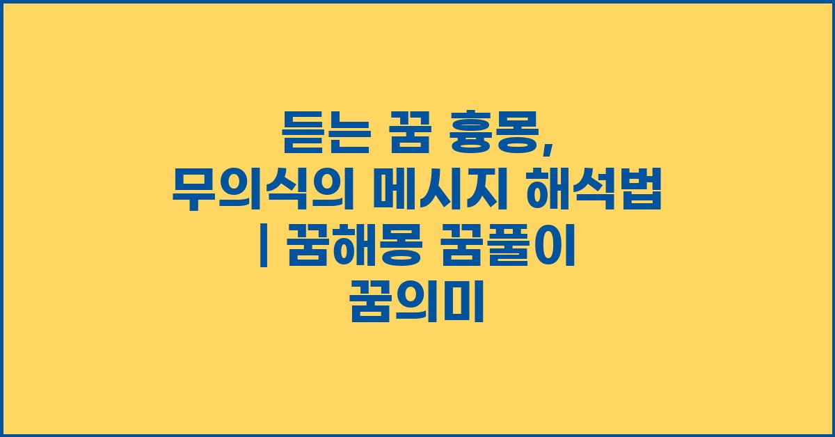 꿈은 종종 우리의 무의식을 비추는 거울과 같습니다. 자고 있는 동안, 우리의 마음은 무의식의 세계로 빠져들며 다양한 이미지와 감정으로 꿈을 꾸게 됩니다. 그 중에서도 특히 '듣는 꿈 흉몽'은 우리의 내면에서 발생하는 복잡한 감정과 생각을 드러내는 중요한 신호일 수 있습니다. 여러분도 그런 꿈을 꾸셨나요? 그래서 오늘은 이러한 꿈들이 우리에게 어떤 메시지를 전달하는지 살펴보겠습니다.