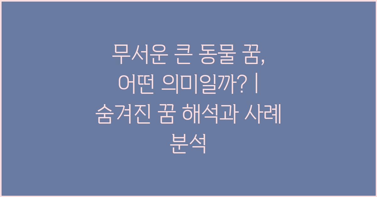 꿈은 의식 및 무의식의 경계에서 우러나오는 가장 신비로운 표현 중 하나입니다. 특히 무서운 큰 동물 꿈, 어떤 의미일까? | 꿈해몽 꿈풀이 꿈해석 꿈의미에 대한 궁금증은 많은 이들에게 흥미로운 주제였습니다. 꿈에서 큰 동물을 보거나, 그로 인해 두려움을 느낀다면 이는 단순한 환상이 아닐 수 있습니다. 꿈은 우리의 감정과 심리 상태를 반영하기 때문입니다. 그러므로 이러한 꿈을 해석하는 것은 우리 자신을 이해하는 데 큰 도움이 됩니다.
