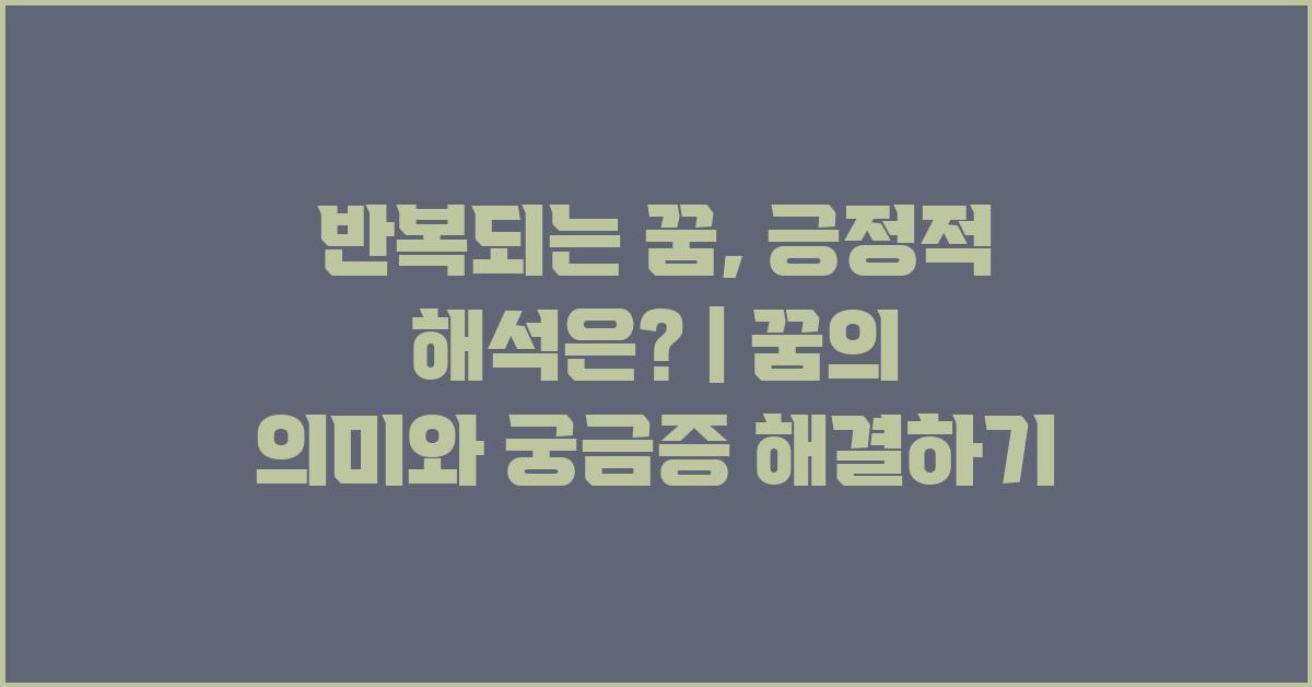 결론적으로, 반복되는 꿈은 우리에게 많은 메시지를 전달하고 있습니다. 이러한 꿈을 통해 자신을 깊이 들여다보는 기회를 가질 수 있습니다. 반복되는 꿈, 긍정적 해석은? | 꿈해몽 꿈풀이 꿈해석 꿈의미는 잘 해석한다면, 삶의 중요한 단서를 제공할 수 있습니다.