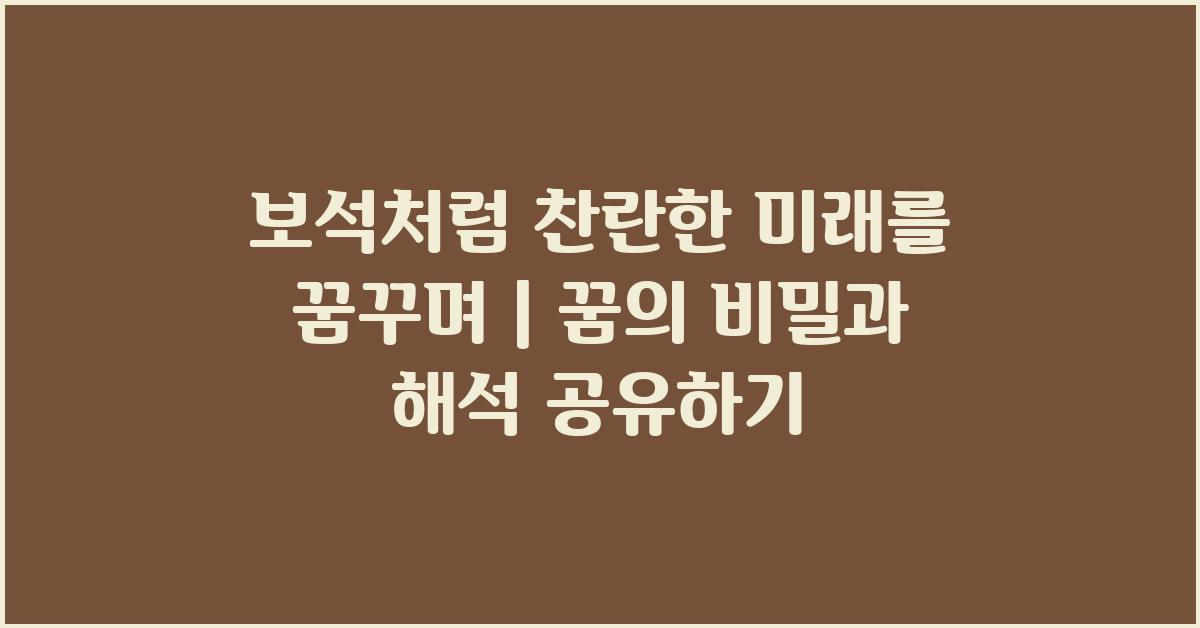먼저 꿈은 우리의 무의식이 만들어냅니다. 심리학적으로 보면, 꿈은 우리가 겪은 날의 사건들을 처리하는 과정이라 할 수 있습니다. 그리고 우리의 감정이 어떻게 구체화되는지를 탐구할 수 있는 기회를 제공합니다. 꿈의 내용을 분석함으로써 우리는 자신을 더 잘 이해하고 미래에 대한 통찰을 얻을 수 있습니다. 마치 보석이 빛나는 것처럼, 우리의 미래도 그렇게 밝고 아름답게 빛날 수 있는 가능성이 있다는 메시지를 담고 있습니다.