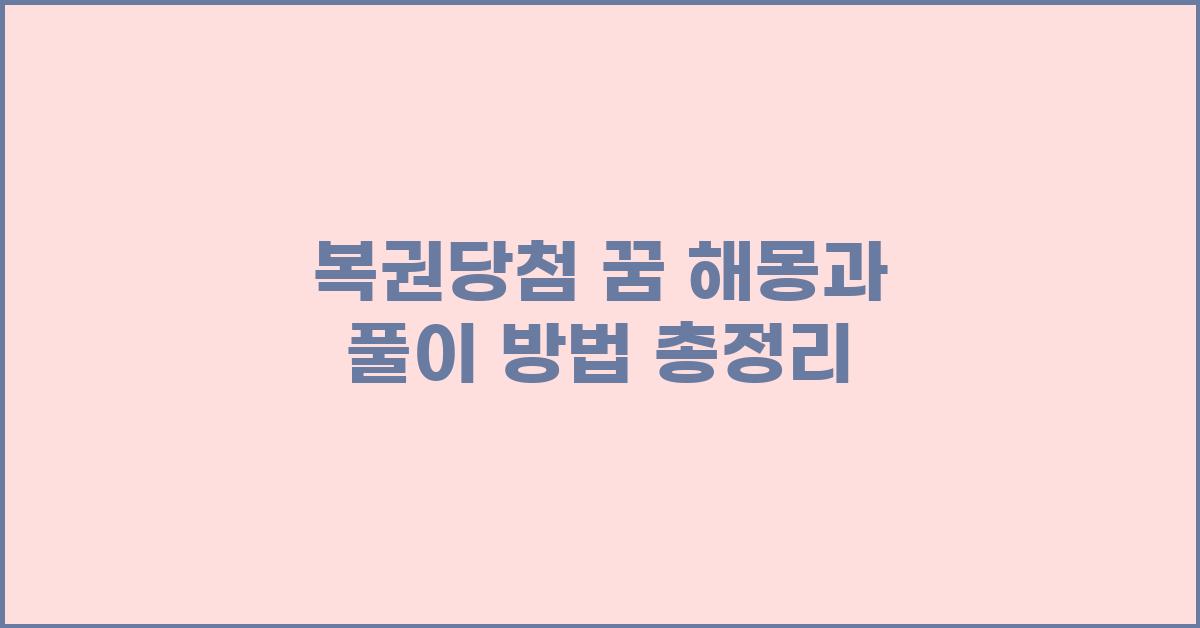복권당첨 꿈에 대한 해몽과 풀이 방법을 총정리했습니다. 꿈해몽을 통해 자신의 삶을 돌아보고, 복권당첨에 대한 다양한 해석을 이해해 보세요.