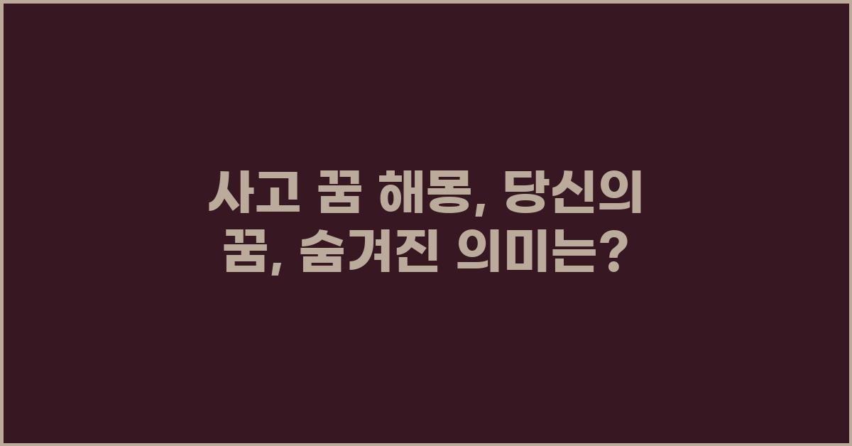 🔍 사고 꿈 해몽: 상황별 꿈 해석 완벽 가이드