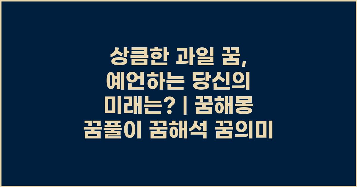 상큼한 과일 꿈을 꾸는 것은 단순히 맛있는 과일을 보고 느끼는 뇌의 신호만이 아닙니다. 오히려 꿈은 많은 것들을 의미하는 데, 이러한 꿈은 당신의 미래를 보여줄 수 있는 강력한 신호일 수 있습니다. 꿈해몽, 꿈풀이, 꿈해석, 꿈의미와 관련된 내용을 알아보겠습니다. 이 꿈이 당신의 삶에 어떤 영향을 미칠지 함께 탐구해보아요.