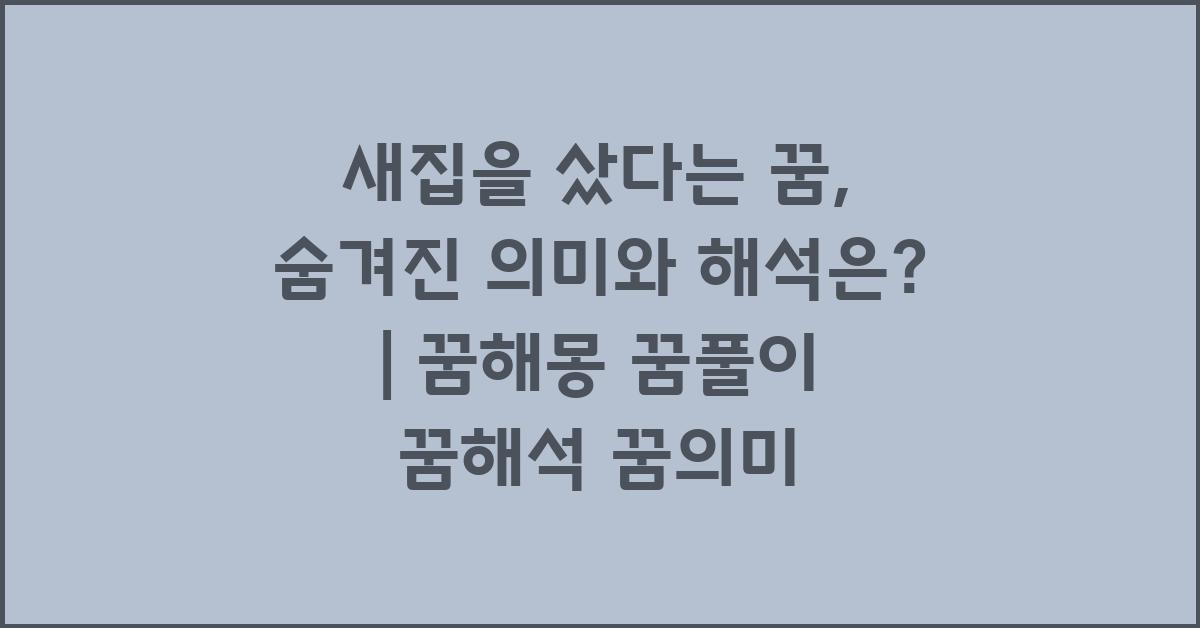 📌 새집을 샀다는 꿈, 무슨 뜻일까?