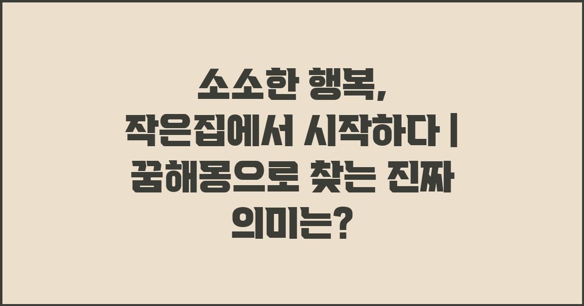 소소한 행복, 작은집에서 시작하다 | 꿈해몽 꿈풀이 꿈해석 꿈의미를 통해 오늘 글을 마무리 짓겠습니다. 작은 집에서의 행복을 위해서는 우리 안의 꿈과 감정, 일상의 소중함을 더 잘 알게 되는 것이 중요합니다. 어떤 꿈을 꿨느냐에 따라 우리의 길이 변화할 수 있다는 사실, 여러분도 느끼셨나요? 이제 아래의 자주 묻는 질문을 통해 더 많은 정보를 확인해보세요!
