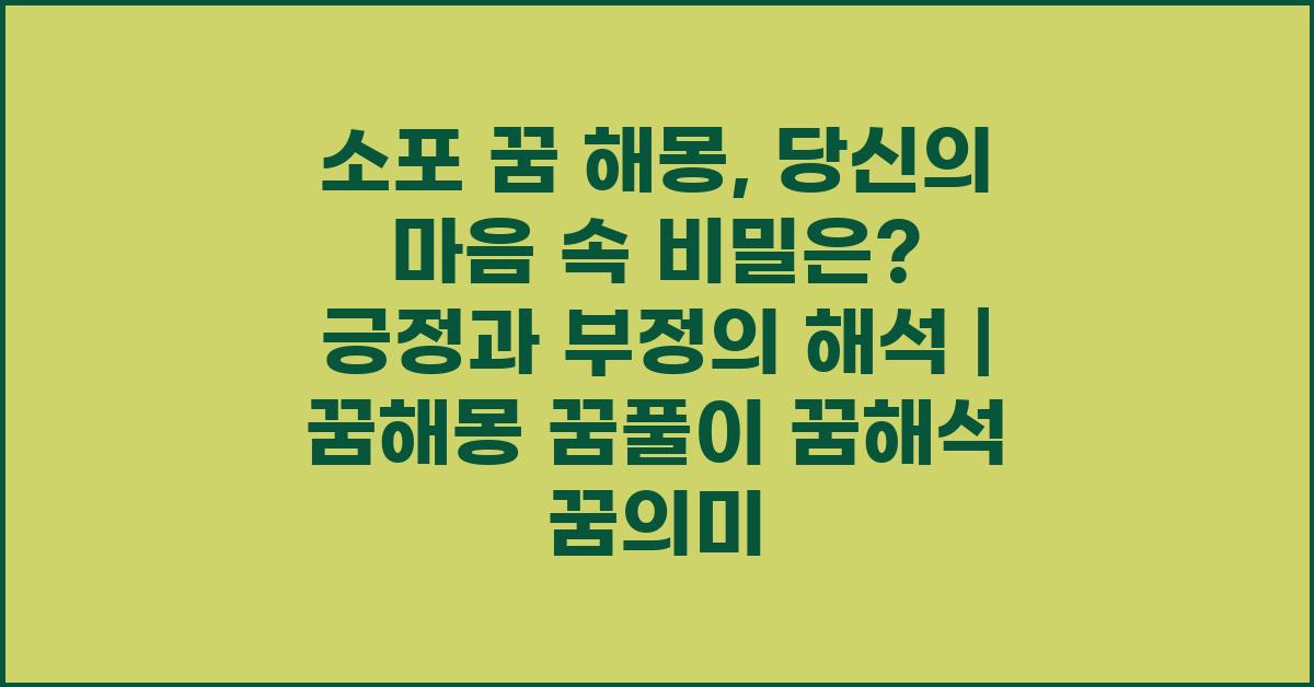 소포 꿈 해몽, 긍정과 부정의 해석은 우리의 마음속 비밀과 연결되어 있습니다. 이러한 꿈을 분석함으로써 우리는 현재의 감정 상태와 상황을 좀 더 명확하게 이해할 수 있습니다. 이러한 통찰은 생각보다 삶의 질을 높이는 데 큰 역할을 하는데, 자신을 돌아보는 데 도움을 줄 수 있습니다.