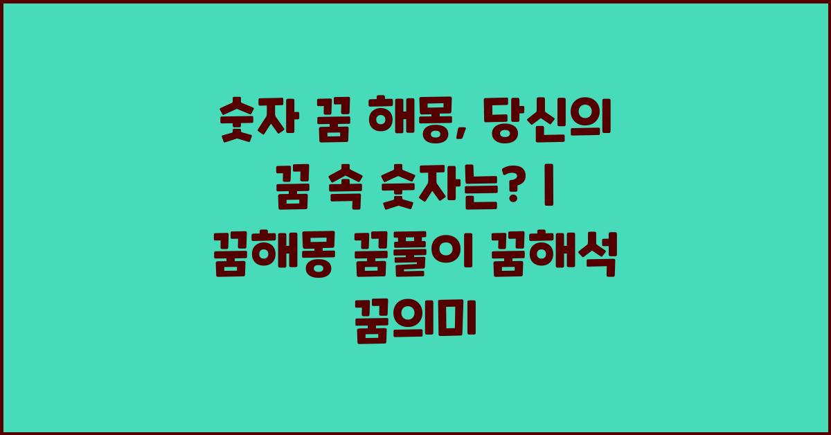 꿈은 우리 무의식이 드러나는 창구이자, 불안이나 소망을 표현하는 방법이 될 수 있습니다. 특히 숫자는 꿈 속에서 특별한 상징을 지니고 있다고 여겨집니다. 숫자 꿈 해몽, 이 숫자의 의미는? 불행하게도 많은 사람들이 꿈의 내용을 아는 것보다 상징적인 의미를 이해하는 데 불안해 하곤 합니다. 여러분도 꿈 속에 나타나는 숫자들 앞에서 어리둥절한 경험이 있으시죠? 이 글에서는 여러분이 꿈에서 만났던 숫자들의 의미를 심층적으로 분석하며, 이 숫자들이 지닌 다양한 해석을 나누고자 합니다.