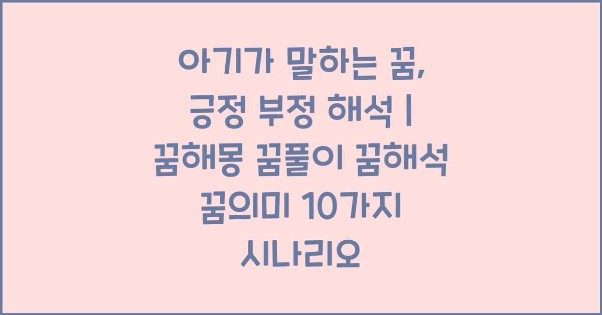 아기가 말하는 꿈의 해석은 매우 다양한 의미를 담고 있습니다. 긍정과 부정 해석을 통해 꿈의 의미를 탐구해보세요.