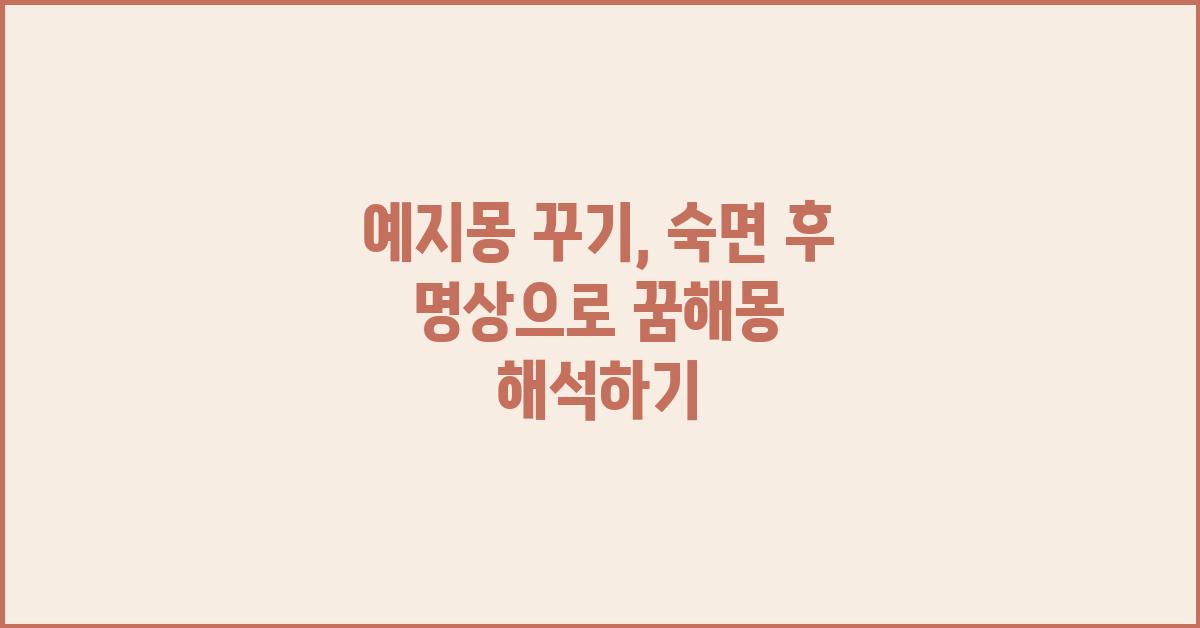 꿈 해석의 과정은 처음에는 혼란스러울 수 있지만, 조금씩 익숙해지면 재미를 느낄 수 있습니다. 중요한 것은 꿈의 요소를 세세히 분석하는 것입니다. 등장인물, 색깔, 그리고 꿈의 감정까지도 놓치지 말고 기억해두세요. 예지몽 꾸기: 숙면과 명상의 조화 | 꿈해몽 꿈풀이 꿈해석 꿈의미는 이렇게 다양한 해석을 가능하게 합니다.