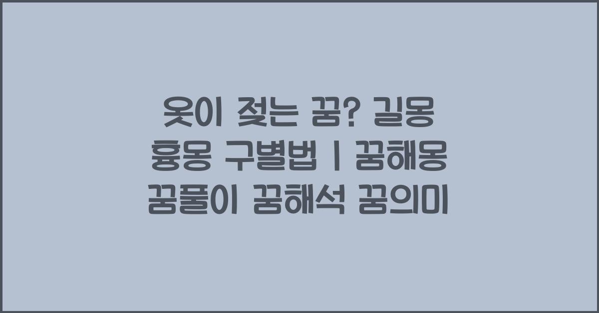 옷이 젖는 꿈은 사람마다 다르게 해석될 수 있습니다. 이 게시물에서는 꿈의 의미를 분석하고, 길몽과 흉몽을 구별하는 방법을 알아보겠습니다.