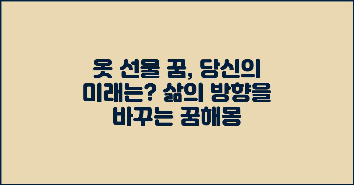 결론적으로 '옷 선물 꿈, 당신의 미래는? | 꿈해몽 꿈풀이 꿈해석 꿈의미'는 미래의 가능성을 예고하는 신비로운 메시지입니다. 이를 통해 여러분의 삶의 방향을 새롭게 설정해보세요!