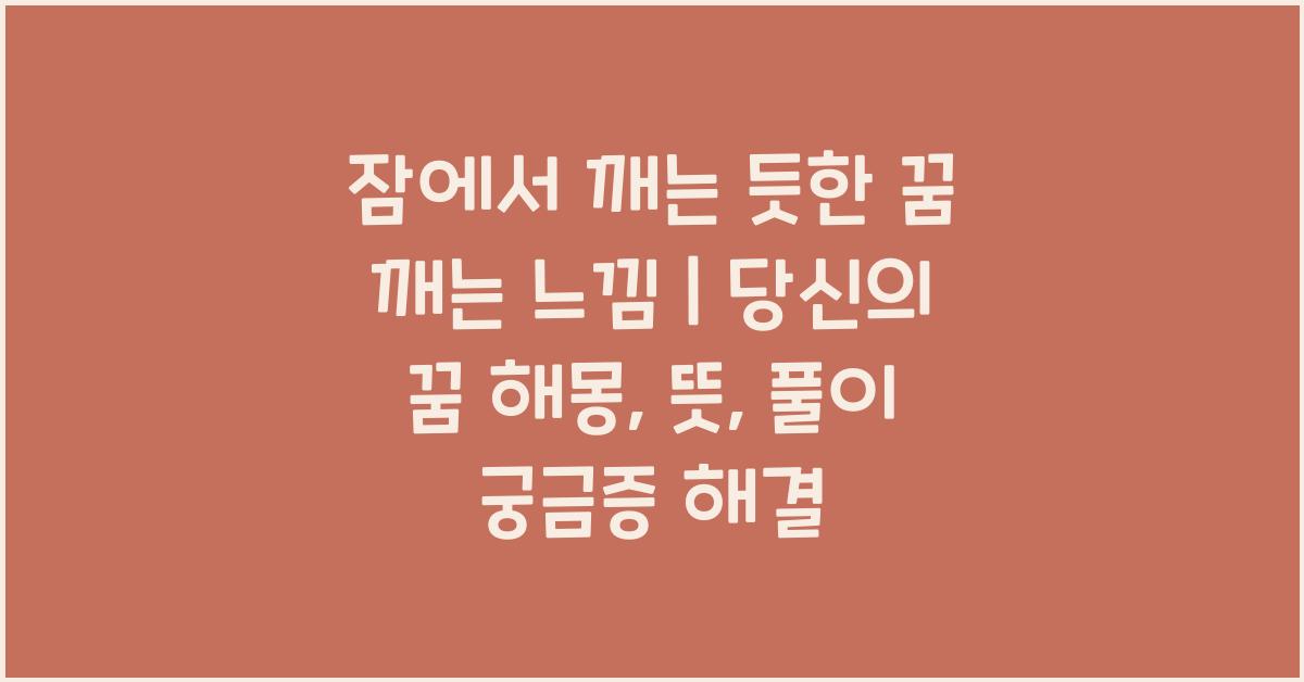 👁️ 꿈의 시작: 잠에서 깨는 듯한 꿈 깨는 느낌