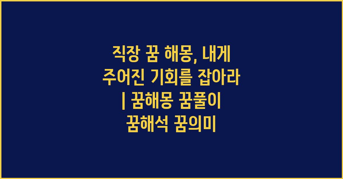 꿈 해석은 어렵고 복잡할 수 있지만, 직장 꿈 해몽: 나의 잠재력을 찾아서 | 꿈해몽 꿈풀이 꿈해석 꿈의미는 꿈을 통해 현실에서 당면하고 있는 문제를 해결하는 방법론을 제시합니다. 접해본 꿈의 내용을 적고, 그때 느꼈던 감정과 현실의 스트레스나 갈등을 연관 지어보십시오. 가능하면 여러 번 꿈을 꿔 보면서 패턴을 찾아가는 것도 좋습니다.