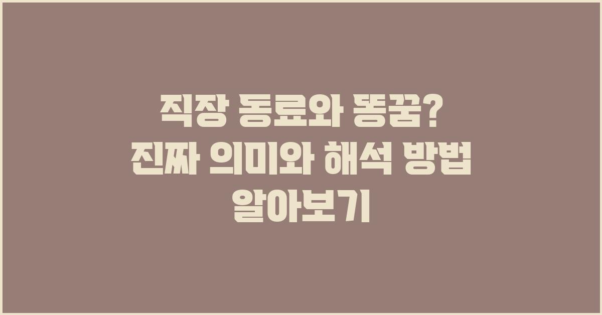 꿈에서 직장 동료가 등장했다면, 그 꿈은 그 동료와의 관계 또는 감정을 반영할 수 있습니다. 예를 들어, 직장 내에서의 경쟁이나 상대방에 대한 혐오감이 똥꿈으로 나타날 수 있습니다. 이는 당신이 무의식 중에 그 동료에게 느끼는 어떤 감정이나 불만을 표출하는 것과 같죠.