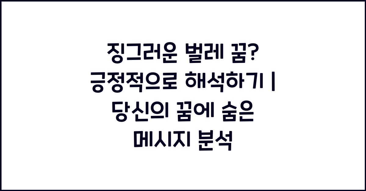 여러분, 한 번쯤 징그러운 벌레 꿈을 꾼 적이 있으신가요? 그 순간의 느낌은 정말 좋지 않죠. 벌레는 대부분 사람들이 두려워하는 존재입니다. 그러나 꿈에서는 많은 것이 우리가 가진 공포와 내면의 감정을 반영합니다. 징그러운 벌레 꿈? 긍정적으로 해석하기 | 꿈해몽 꿈풀이 꿈해석 꿈의미에서 이러한 꿈이 어떤 메시지를 담고 있는지를 깊이 있게 살펴보려 합니다. 꿈속의 벌레는 가끔 미지의 세계로의 초대라고 할 수 있습니다. 그곳에서 우리는 불안과 두려움을 마주하게 되고, 이는 결국 자아 성찰의 기회가 됩니다.