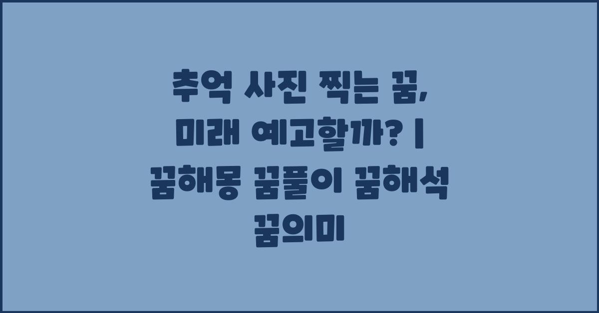 사람들은 꿈 속에서 다양한 장면을 경험하며 때로는 두려움, 때로는 즐거움을 느낍니다. 특히 추억 사진 찍는 꿈, 미래 예고할까?에 관한 해석은 흥미롭고 매력적입니다.