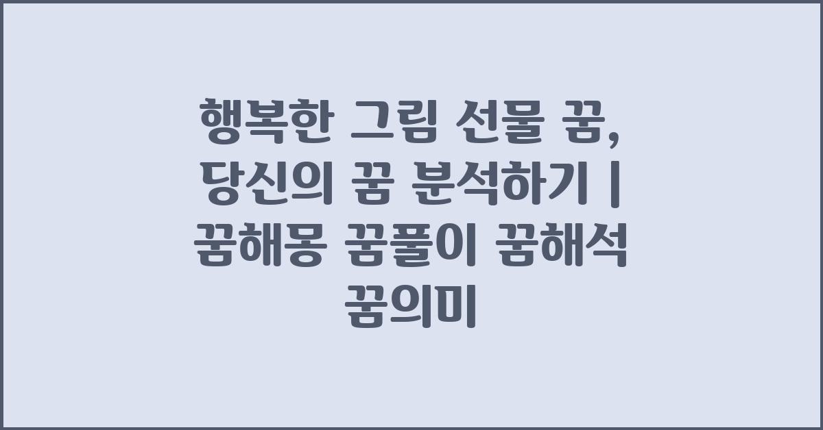 행복한 그림 선물 꿈, 당신의 꿈은 무엇? | 꿈해몽 꿈풀이 꿈해석 꿈의미라는 주제를 바탕으로 우리가 꿈을 통해 배울 수 있는 것들에 대해 살펴보았습니다. 꿈은 종종 우리의 감정과 개인적 관계, 그리고 자아의 성장에 대한 중요한 상징으로 작용할 수 있습니다. 여러분도 자신의 꿈 속에서 다양한 해석을 찾아보는 재미를 느끼시길 바랍니다.