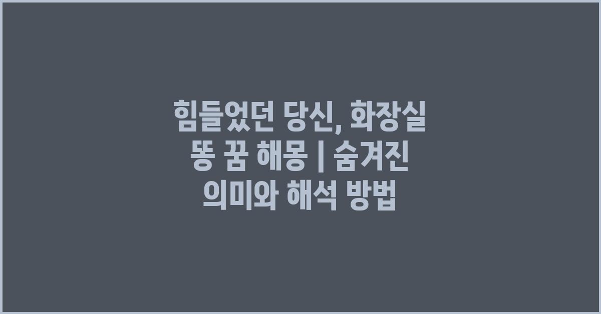 🔍 화장실 똥 꿈의 다양한 해석